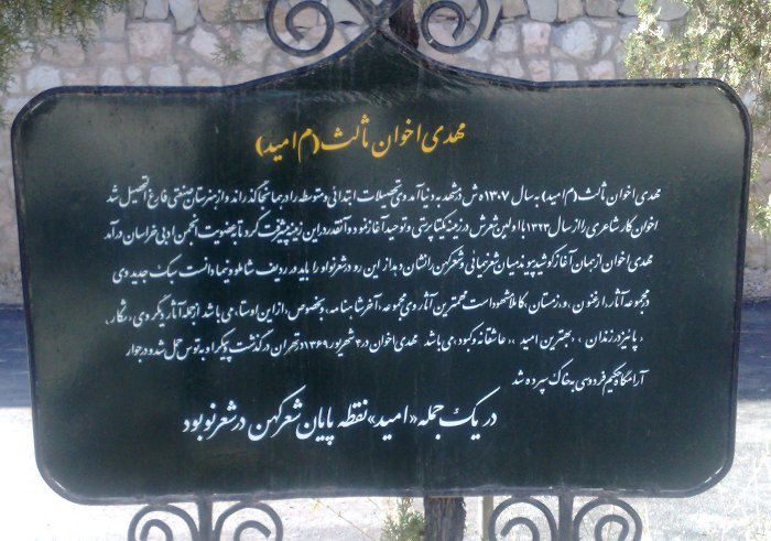 مهدی اخوان ثالث (۱۰ اسفند ۱۳۰۶ – ۴ شهریور ۱۳۶۹) متخلص به م. امید، شاعر، نویسنده و موسیقیپژوه ایرانی بود. اشعار او زمینهٔ اجتماعی دارند و گاه حوادث زندگی مردم را به تصویر کشیده است؛ همچنین دارای لحن حماسی آمیخته با صلابت و سنگینی شعر خراسانی و نیز در بردارندهٔ ترکیبات نو و تازه است.